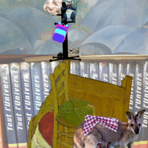 B : (La trainant, et surplombant les cris de A, s’adressant au public, d’un ton décontracté) Non, mais là, elle est bonne pour l’asile. Ce n’est pas possible.