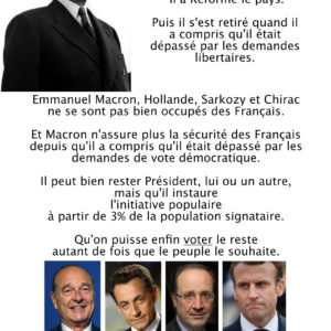 Il faudrait mettre en place des référendums et tirer au sort les représentants pour que le peuple puisse avoir le pouvoir.