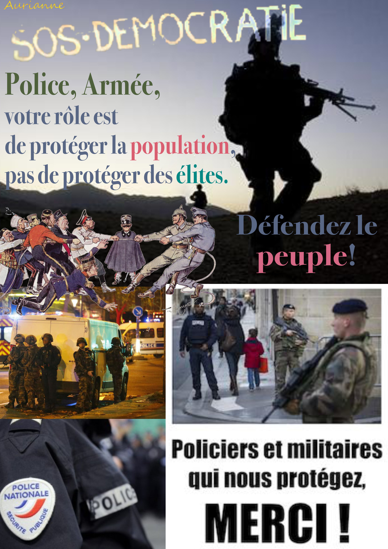 The army fired on peaceful protesters during the yellow vest movement. Some lost an eye or a foot. The yellow vests were simply asking for an improvement in their standard of living (life was too expensive, benefiting only the elite) and for more democratic power (referendums initiated by the people). Their demands were not met because the police and the army were against them.