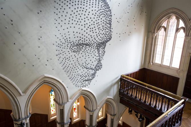 For All TimeA human face made from 2,000 handmade stars, suspended in the Swan foyer, by artist and designer Steven Follen – RSC: https://www.rsc.org.uk/your-visit/see-for-free/for-all-time