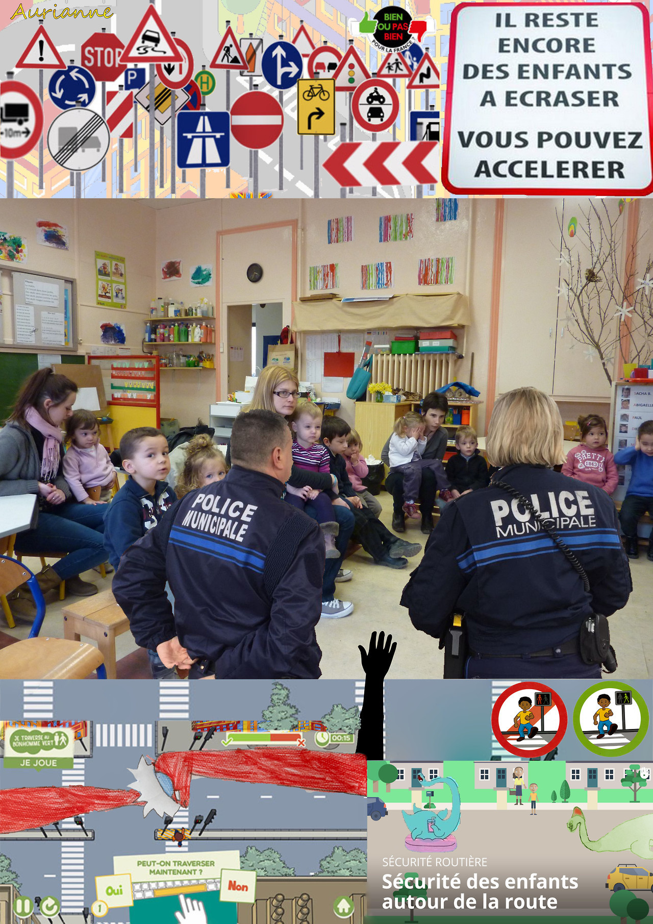 – Ah ! Il faut quand même qu’on vous dise… – Ah ? – Rien de grave. C’est juste que les policiers sont venus à l’école pour expliquer la sécurité routière aux enfants. Ils ont expliqué les panneaux, comment il faut traverser la rue… Ce genre de chose. Quand ils ont fini, ils ont demandé s’il y avait…