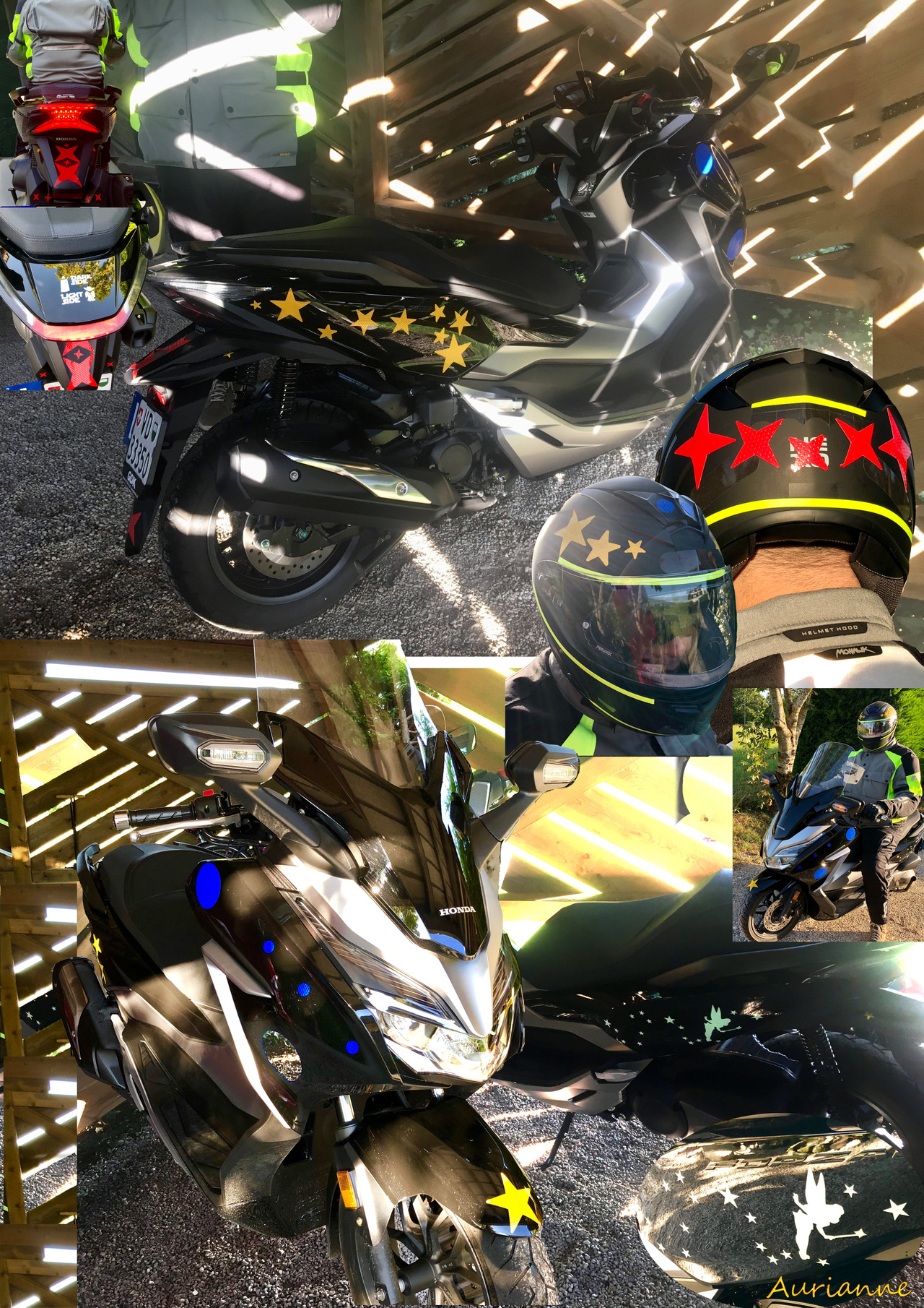 85% of accidents on both wheels are caused by motorists who have not seen them. How to be more visible while being safe? Failing to find a security outfit iridescent like a peacock, my cousin decided to customize his scooter and accessories to be more visible, more his own style. With what we can find…